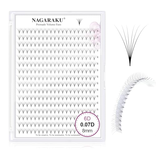 NAGARAKU 6D Förgjorda Volymfransar 320 Fans Volym Premade Fans Lång Stjälk Tunn Bas Spets Naturliga Fluffiga Fächer Fransar Fransförlängning Ögonfrans Ryska Svart 16 Rader Box XL(0.07 D 8mm)