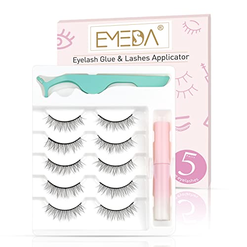 EMEDA Naturliga 3D-falska ögonfransar med lim och pincett 5 par korta ögonfransar med lim Naturlig look surra Mjuka falska fransar Set Vispy remsa fransar med applikator (Naturlig 01)