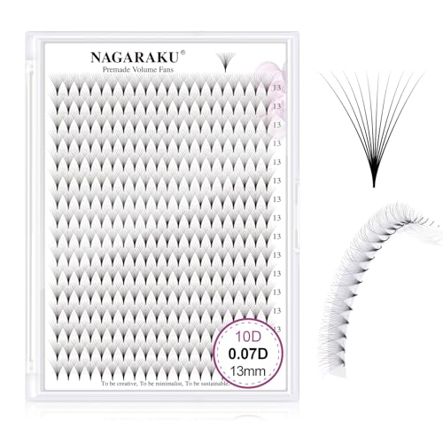 NAGARAKU 10D Förgjorda Volymfransar 320 Fans Volym Premade Fans Lång Stjälk Tunn Bas Spets Naturliga Fluffiga Fächer Fransar Fransförlängning Ögonfrans Ryska Svart 16 Rader Box XL(0.07 D 13mm)