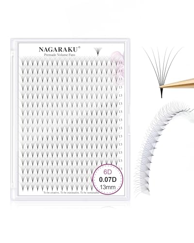 NAGARAKU 6D Förgjorda Volymfransar 320 Fans Volym Premade Fans Lång Stjälk Tunn Bas Spets Naturliga Fluffiga Fächer Fransar Fransförlängning Ögonfrans Ryska Svart 16 Rader Box XL(0.07 D 13mm)