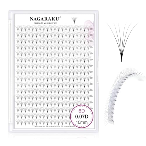 NAGARAKU 6D Förgjorda Volymfransar 320 Fans Volym Premade Fans Lång Stjälk Tunn Bas Spets Naturliga Fluffiga Fächer Fransar Fransförlängning Ögonfrans Ryska Svart 16 Rader Box XL(0.07 D 10mm)