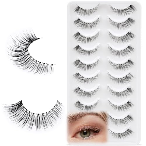 EMEDA 10 Par Naturliga Falska Halva Fransar Klart Band Accent Halva Ögonfransar Genomskinligt Band Återanvändbar Lösögonfransar Transparent Band False Eyelashes (Accent Lashes)