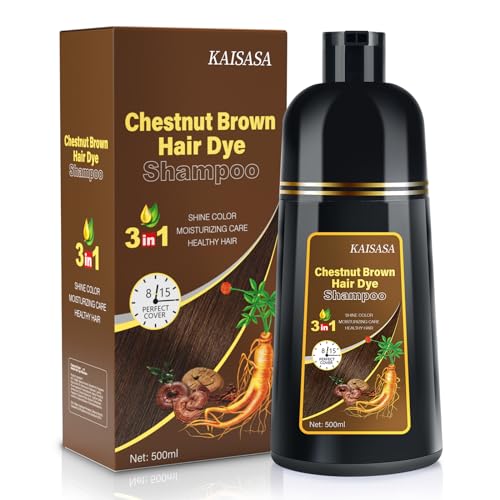 Chestnutbrown Hårfärgningsschampo 3-i-1, naturligt hårfärg, halvpermanent hårfärg, gråhårtäckning, anti-grå effekt schampo för färgat hår för kvinnor och män (500 ml)