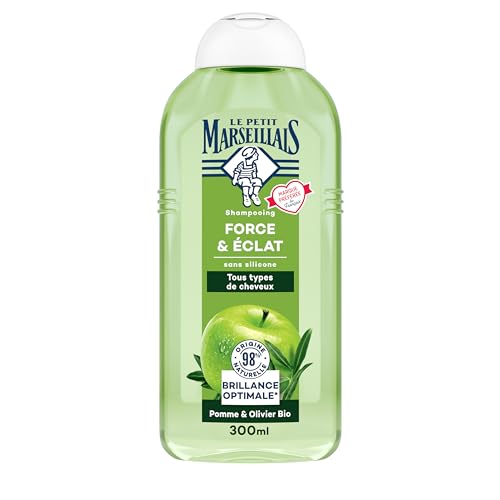 Le Petit Marseillais | Apple & Olivier Bio Force & Eclat Shampoo (300 ml) - Silikonfritt schampo för normalt hår - 98% naturligt ursprung för optimal glans