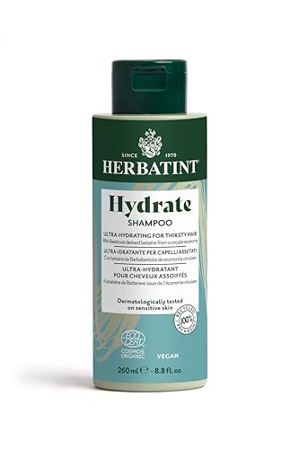 Herbatint Hydrate Ultra Fuktgivande schampo – 260 ml | Organiskt schampo idealiskt för törstigt, torrt och dehydrerat hår | Exklusiv formel, 97% ingredienser av naturligt ursprung, Cosmos Organic,