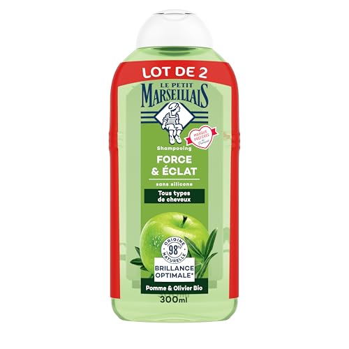 Le Petit Marseillais | Pomme & Olivier Bio Force & Éclat Schampo (2 x 300 ml) - Silikonfritt för Normalt Hår - 98% Naturligt Ursprung