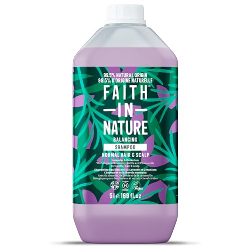 Faith in Nature Lavendel & Geranium, naturligt schampo, näringsrikt, veganskt och djurtestat, SLS- och Parabenfritt, normalt eller fet hår, 5 l påfyllningsbar flaska