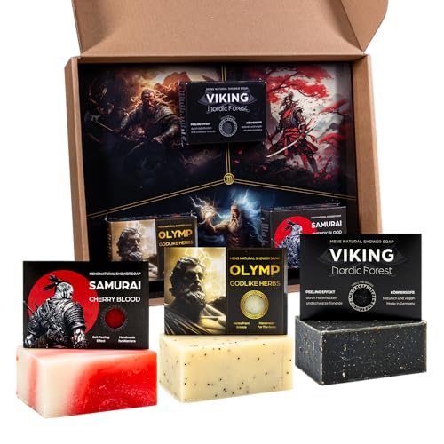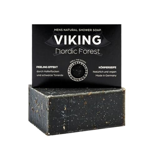 MEDUNA Peeling tvål Viking Nordic Forest 100 g – fast naturtvål – handgjord tvål – vegansk vårdtvål – kroppstvål för alla hudtyper – ekologisk kokosolja och sheasmör herrvård – tillverkad i Tyskland