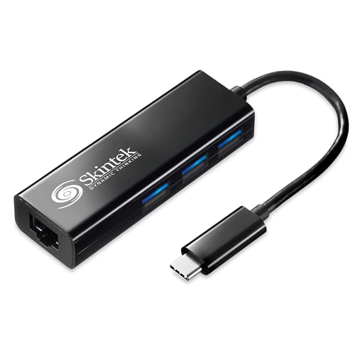 Skintek SK-04-TCLH USB C type C till Gigabit RJ45 Ethernet-nätverksadapter 10/100/100, inkluderar 3-portars USB 3.0-hubb. Kabel 8 cm