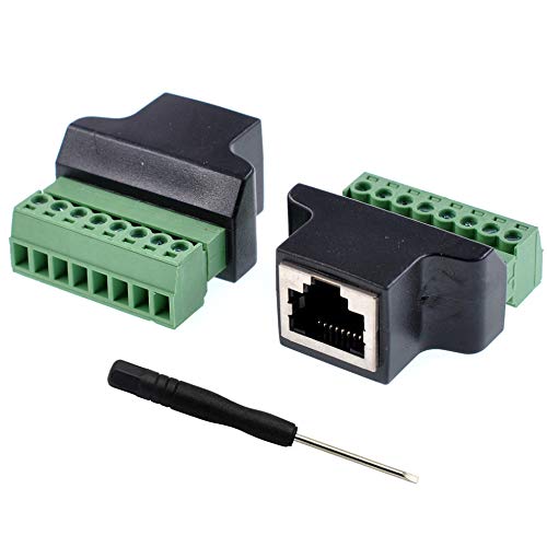 Oiyagai 2 st kompatibel RJ45 skruvterminaladapter kontakt RJ45 8p8c honuttag till 8-stifts skruvterminalkontakt för Cat7 Cat6 Cat5 Cat5e Ethernet-förlängare CCTV digital DVR-nätverksadapter
