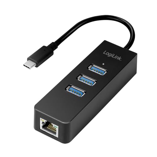 LogiLink USB 3.0 till Gigabit nätverksadapter (RJ45) och 3x USB 3.0 hub Typ-C till RJ45 svart