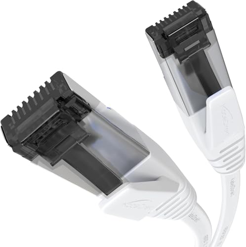 KabelDirekt – Cat 8-nätverkskabel platt & flexibel – 20m (LAN-kabel/Ethernet-kabel, RJ45, överför högsta datahastigheter upp till 40GBPS, perfekt för spel/PS5/XB – Vit)