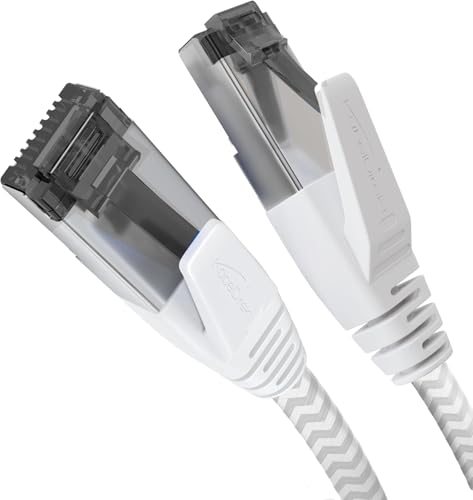 KabelDirekt – Cat 8 Nätverkskabel platt, flexibelt & brudsäkert flätverk – 20m (LAN-kabel/Ethernet-kabel, RJ45, överför högsta datahastigheter upp till 40GBPS, perfekt för spel/PS5/XB – Vit)