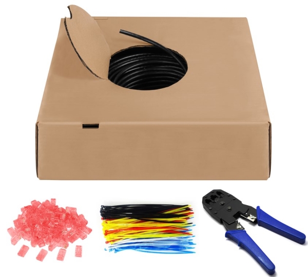 CAT 6 utomhus-nätverkskabel SET, U/UTP, svart, 100 m pappkartong med label