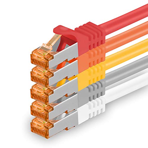 1aTTack.de 5 x 0,5 m - 5 färger-1 - Cat7 Cat 7 10 GB/s SFTP Ethernet-nätverkskabel - RJ45 Ethernet LAN DSL Router modem