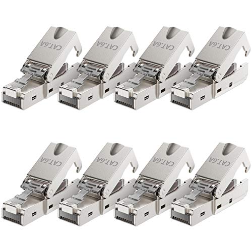 deleyCON 8x CAT 6a Nätverkskontakt RJ45 med LSA-Anslutning för Stela Installationskablar Skärmad 10 Gbit/S LAN-Kabel Nätverkskabel Kontakt CAT6a Aluminiumhölje