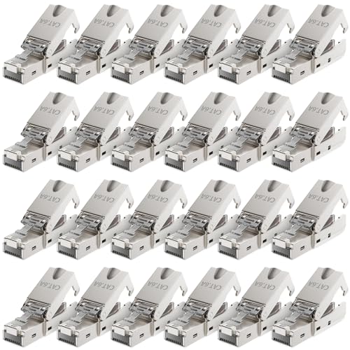 deleyCON 24x CAT 6a Nätverkskontakt RJ45 med LSA-Anslutning för Stela Installationskablar Skärmad 10 Gbit/S LAN-Kabel Nätverkskabel Kontakt CAT6a Aluminiumhölje