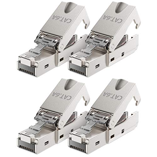 deleyCON 4x CAT 6a Nätverkskontakt RJ45 med LSA-Anslutning för Stela Installationskablar Skärmad 10 Gbit/S LAN-Kabel Nätverkskabel Kontakt CAT6a Aluminiumhölje