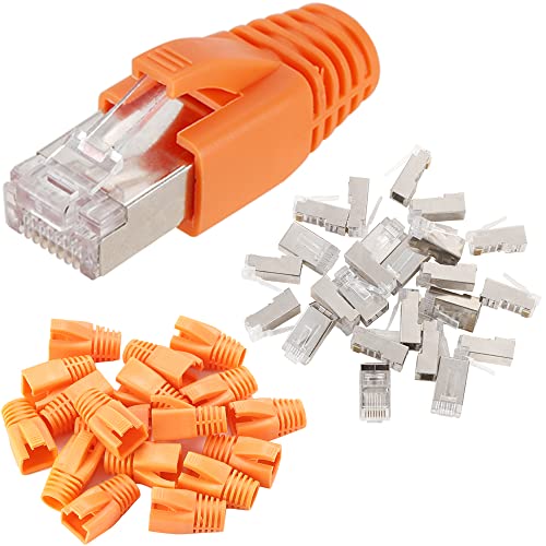 Greluma 25 St CAT6 Metallskyddade RJ45-Kontakter Modulära Pluggändar - FTP 8P8C Nätverkskabel Crimp Ethernet-Kontakt (trådhål 1,2 mm) med CAT6-Dragavlastning Stövlar