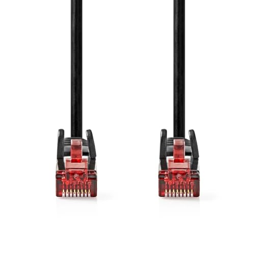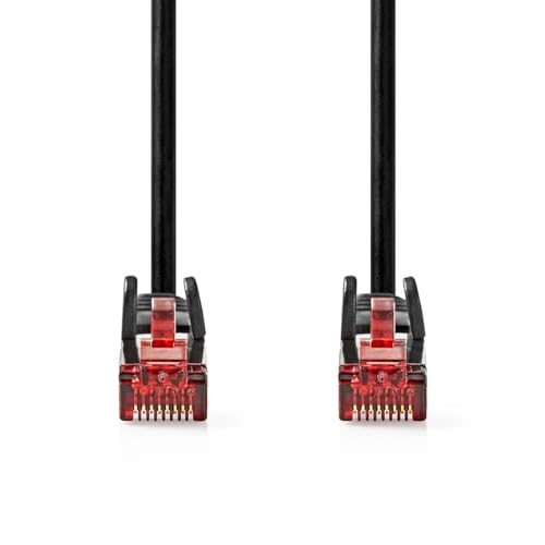 Nedis CAT6 nätverkskabel – RJ45-kontakt – RJ45-kontakt – U/UTP – 1,00 m – Snagless – platt – PVC – svart – etikett