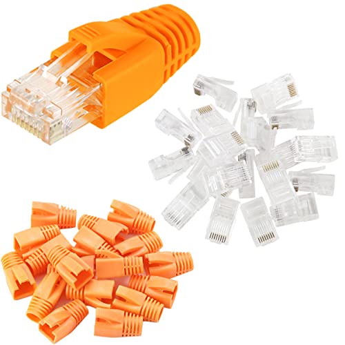 Greluma 25 St CAT6 RJ45-Kontakter Modulära Pluggändar - 8P8C Nätverkskabel Crimp Ethernet-Kontakt (trådhål 1,2 mm) med Dragavlastning Stövlar