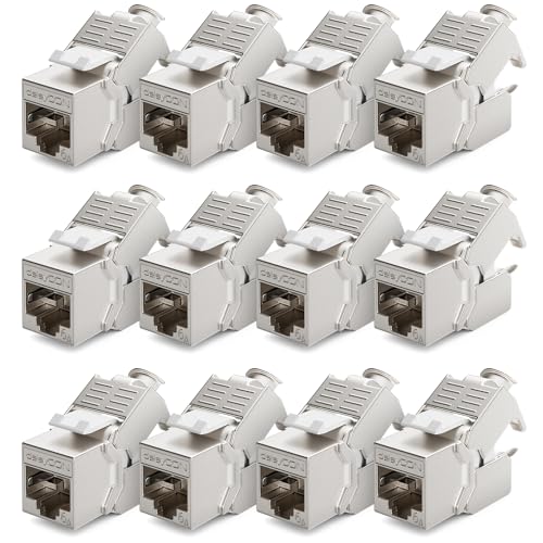 deleyCON 12x CAT6a Keystone Jack-Modul Patchkabel Nätverkskabel Kontakt STP-Skärmning RJ45-Uttag Nätverk Dosa Patchpanel Keystonehållare Förlängning