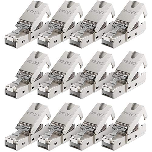 deleyCON 12x CAT 6a Nätverkskontakt RJ45 med LSA-Anslutning för Stela Installationskablar Skärmad 10 Gbit/S LAN-Kabel Nätverkskabel Kontakt CAT6a Aluminiumhölje