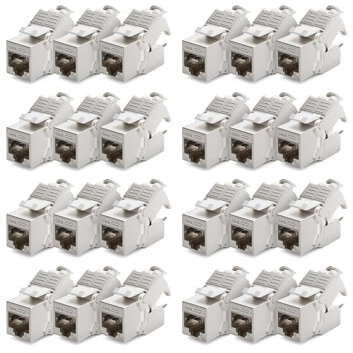 deleyCON 24x CAT6a Keystone Jack-Modul Patchkabel Nätverkskabel Kontakt STP-Skärmning RJ45-Uttag Nätverk Dosa Patchpanel Keystonehållare Förlängning