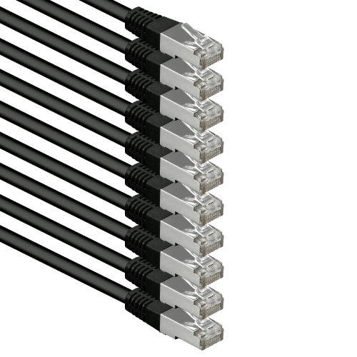 5m svart - 10 stycken Cat.6 patch kabel nätverkskabel CAT6 S-FTP Gigabit Lan PIMF CAT 6 koppar CU halogenfri Internet DSL spelkonsol Smart TV