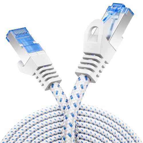 deleyCON 10m CAT 8 Patchkabel (40 Gbit/s, 2000 MHz) Gigabit Nätverkskabel Ethernetkabel RJ45 S/FTP POE CAT8 LAN-Kabel för PS5 Router Modem TV Switch Laptop - Vit