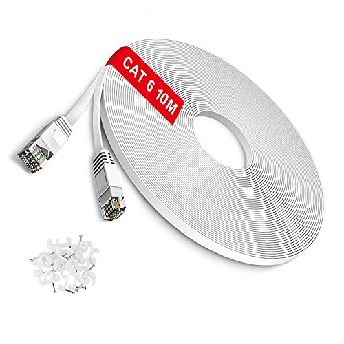 TBMax 10 m Ethernet-kabel platt Cat6 hög hastighet Gigabit LAN-nätverkskabel lång – OFC -RJ45 UTP internetpatchkabel för dator, PS5, modem, router, TV – kompatibel med Cat5e Cat6a Cat7, vit