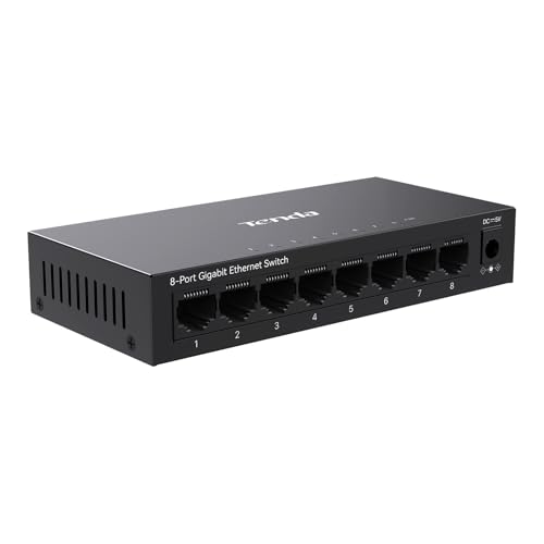 Tenda 8-port gigabit-brytare, ohanterad nätverksomkopplare, Ethernet-brytare, internetbrytare, hemnätverksnav plug-and-play, tyst drift, stationär eller väggmontering (TEG1008M)
