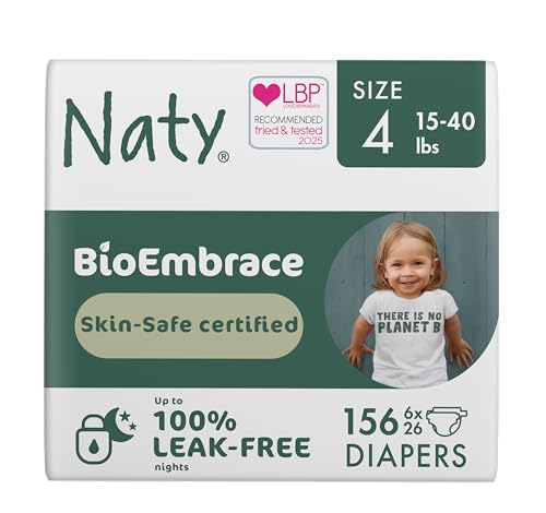 Naty BioEmbrace Blöjor Storlek 4 (7–18 kg) | 100% Biobaserat på Hud | Växtbaserad Mjukhet, Dermatologiskt Testad, Super Absorberande | 156 Stycken