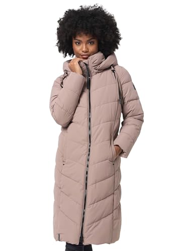 Navahoo Umay Damvinterkappa, varm kviltad kappa, lång med huva, storlek XS–XXL, toupe, L