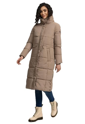 Navahoo Damvinterjacka, lång, quiltad vinterjacka, quiltad huva, B982, Taupe grå, XL