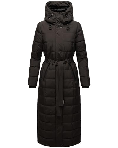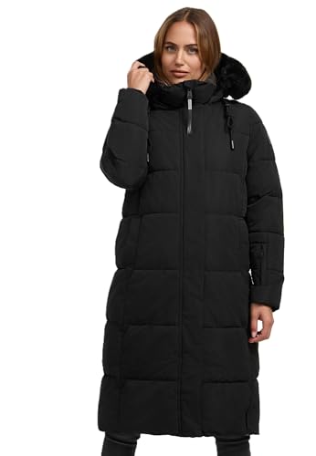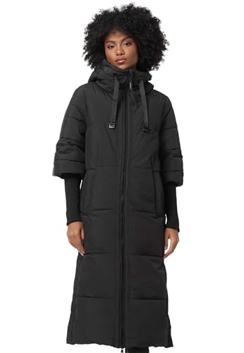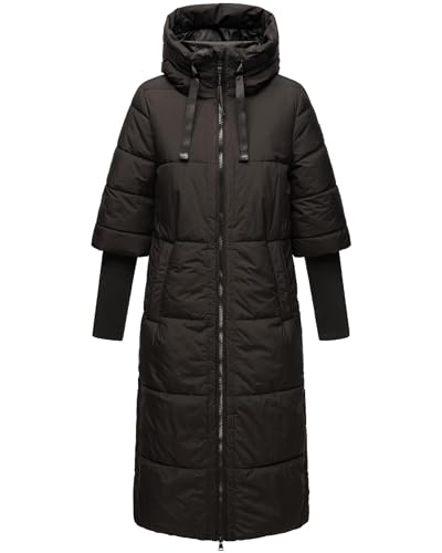 Navahoo Damvinterkappa, varm, quiltad kappa, lång med huva, gosig mausi S–XXL, svart, S