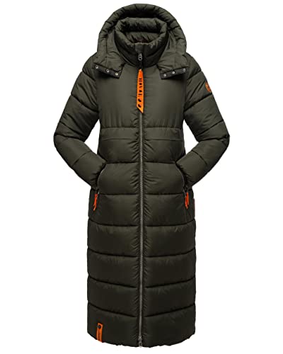Navahoo Kristallblume Varm vinterkappa med huva, för damer, täckkappa, storlek XS–3XL, Mörk oliv, XL