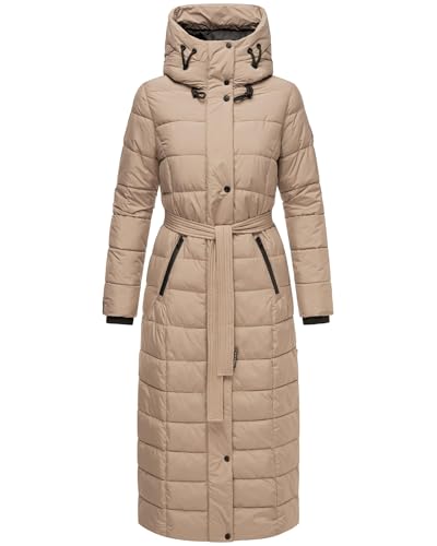Navahoo damvinterjacka (S-3XL) – 4 fickor, midjeband, gångslitsar på sidan, lång quiltad jacka, varm jacka för kvinnor – N020, Taupe grå, S