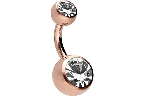 PIERCINGLINE Navelpiercing av kirurgiskt stål med 2 kristaller – bananabellpiercing i snygga färger och 4 storlekar, 6 mm, 316L kirurgiskt stål
