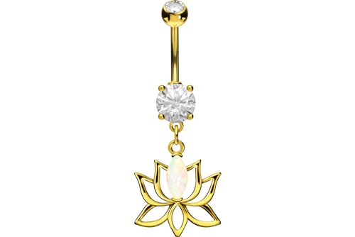 PIERCINGLINE Magknappsring kirurgiskt stål | opal lotusblomma | piercing bananabell navelpiercing, Kirurgiskt stål 316L/mässing, Zirkon