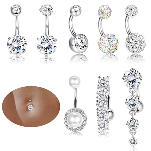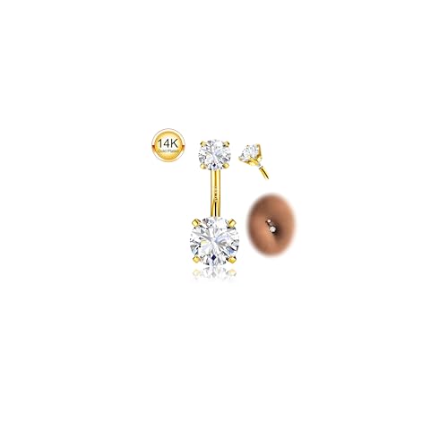 Morfetto Kirurgiskt stål navelpiercing för kvinnor 14G titan 925 sterling silver 14 karat guld piercingar hypoallergen navel rund kubisk zirkon 6/8/10/12 mm piercingsmycken, 8MM, Mässing, Ingen