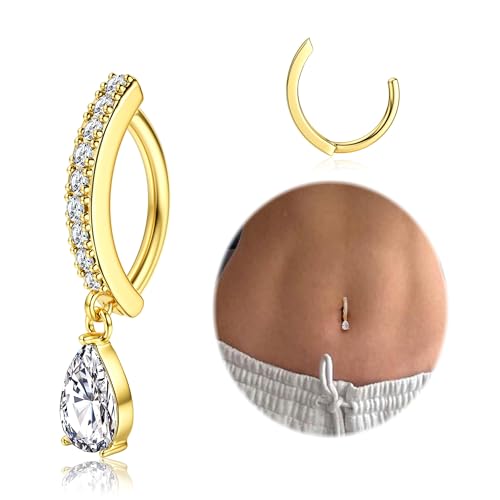 Morfetto Navelpiercing gyllene ring CZ magring för dam 14G 10 mm, guld rostfritt kirurgiskt stål