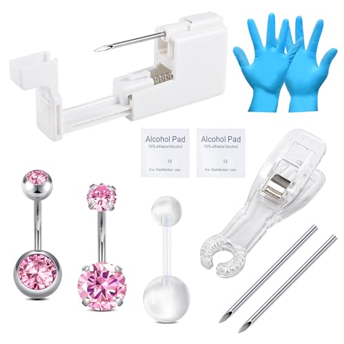 WillTen 10 st piercingkit, navelpiercing kit med piercingpistol, extra 13G 14G piercing med 316L kirurgiskt rostfritt stål bukbar för navel septum näsa nippel tungpiercing, Metall