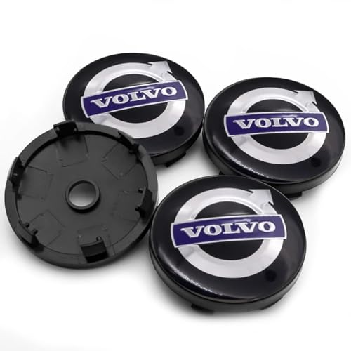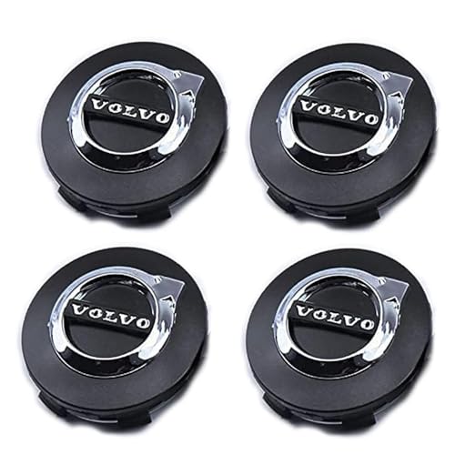4 stycken centrala bilnavkapslar för Volvo C70 S60 V60 V70 S40 S80 XC90 64 mm navkapsel, navkapslar, navkapslar, centralt hjulskydd, tillbehör, svart stil