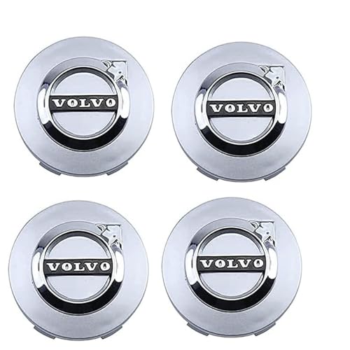 4 stycken centrala bilnavkapslar för Volvo C70 S60 V60 V70 S40 S80 XC90 64 mm navkapsel, navkapslar, navkapslar, centralt hjulskydd, tillbehör, silverstil