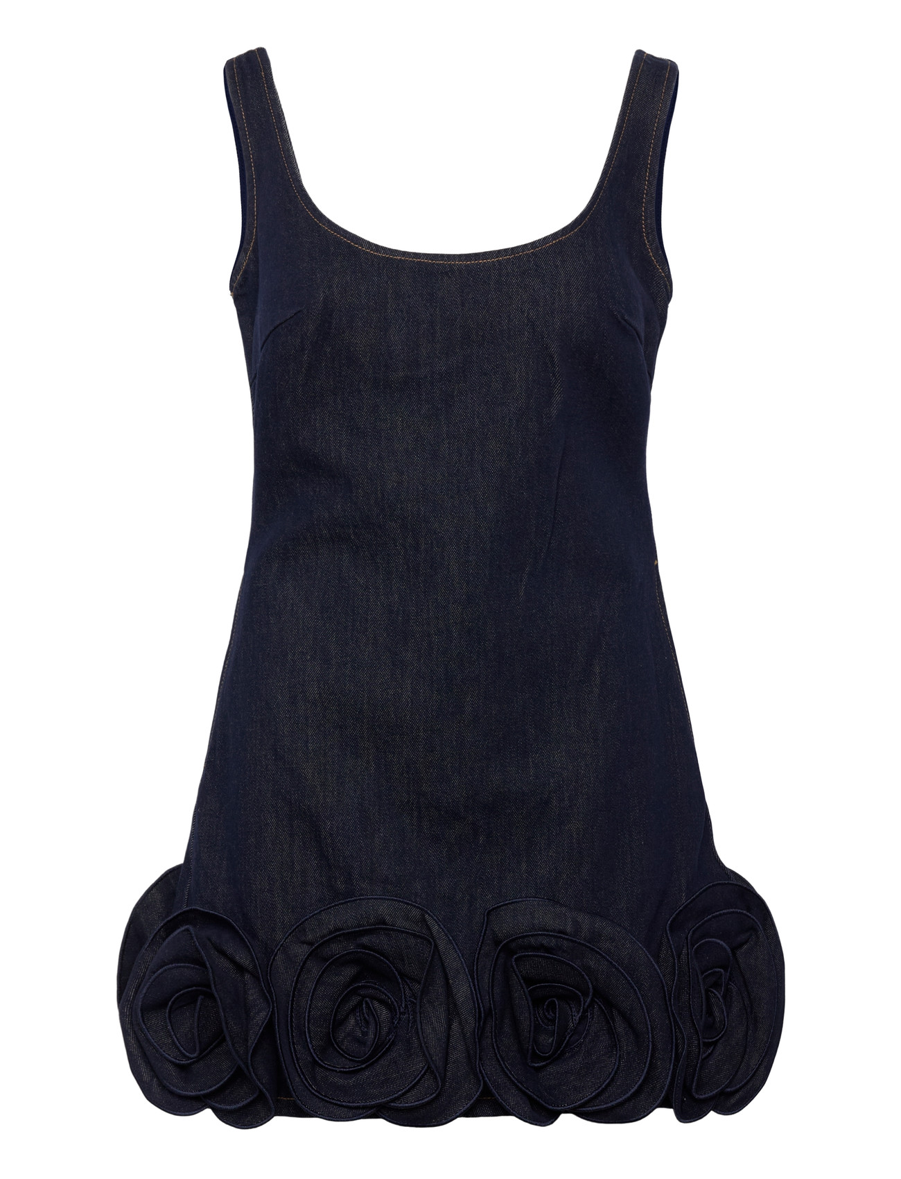 Self Portrait Blue Denim 3D Flower Mini Dress - Navy - 36