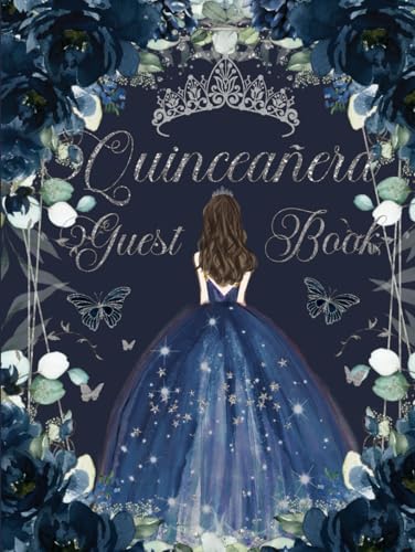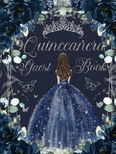 Quinceanera Guest Book Hardcover Navy Blue Floral Flowers Princess Dress Silver: Mis Quince Años ( Sweet 15 Birthday) Keepsake Memento Guest Messages and Memories