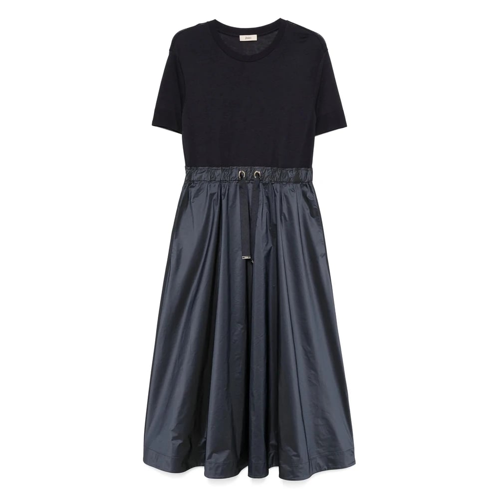 Herno, Klänningar , Dam, L, Navy Blue Klänning med Dragsko i Midjan