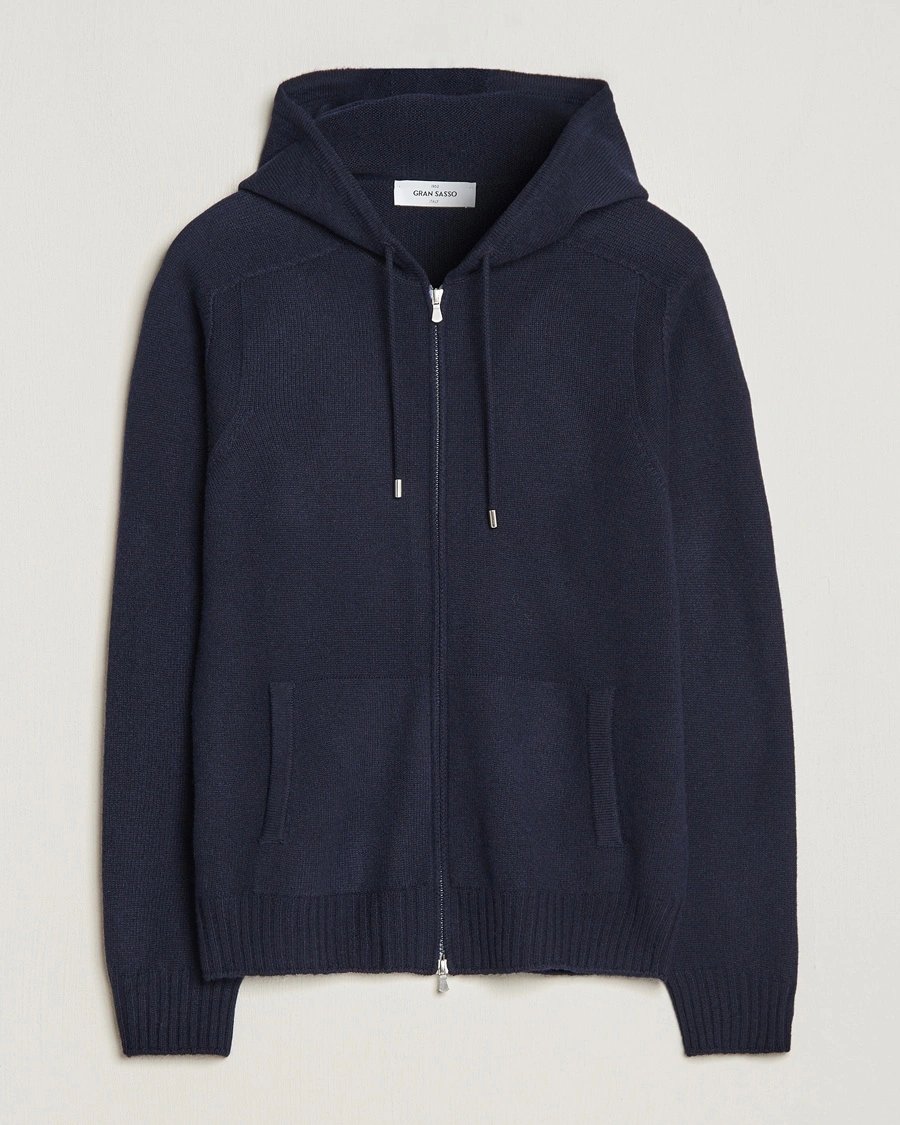 Gran Sasso Full Zip Wool Hoodie Navy