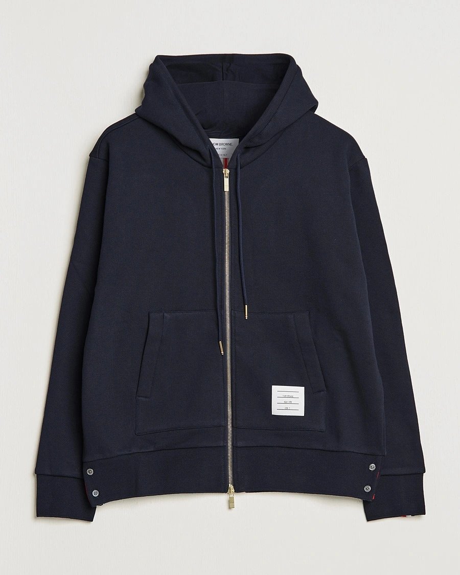 Thom Browne Center Back Full Zip Hoodie Navy